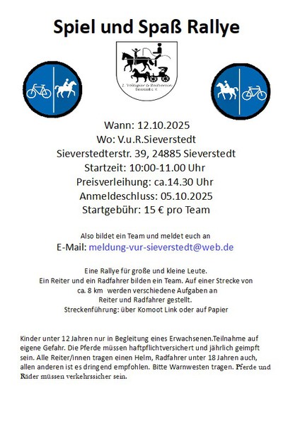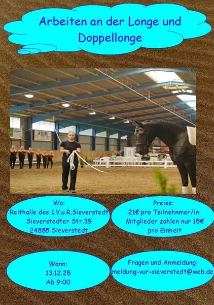 Wir sind ein Pferdesportverein in Sieverstedt mit einer eigenen 20x60 Reithalle ohne Stall. Unsere Angebote richten sich an Personen mit eigenem Pferd oder voltigierbegeisterte junge Menschen.